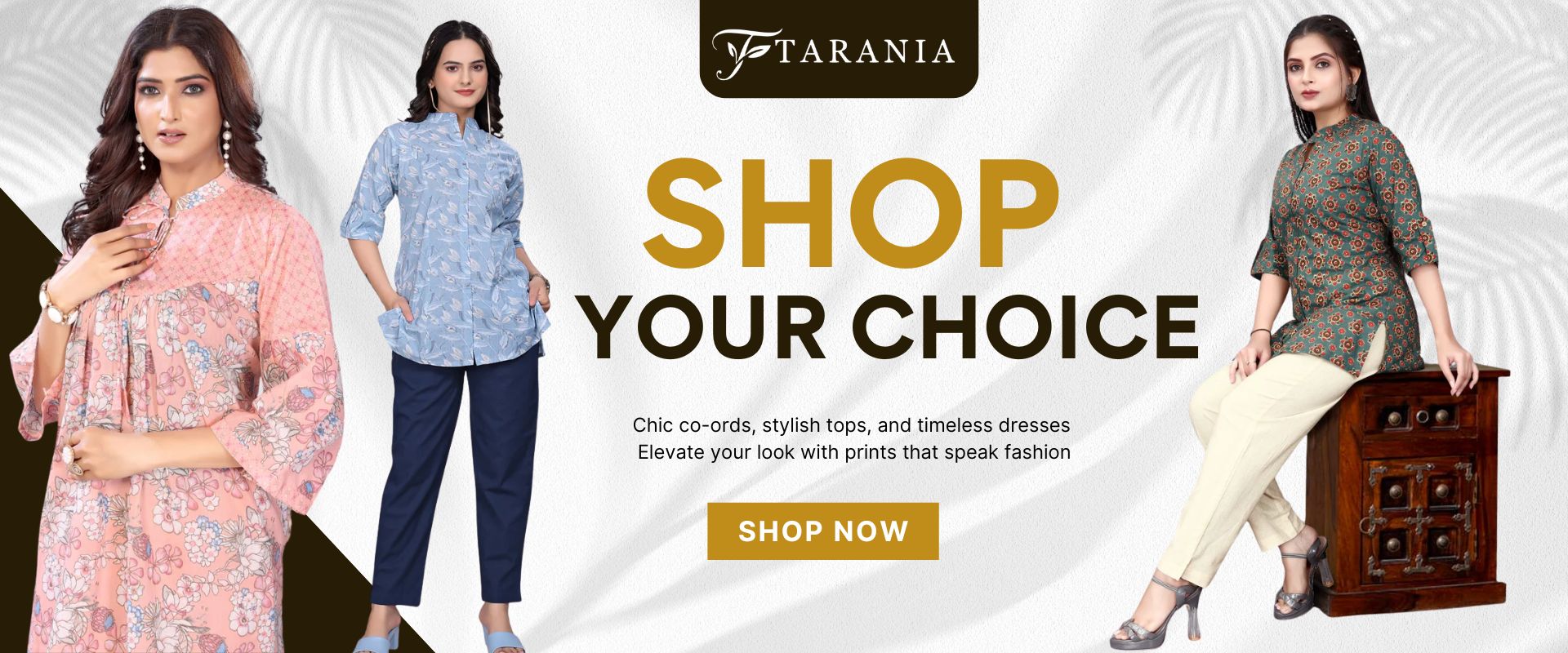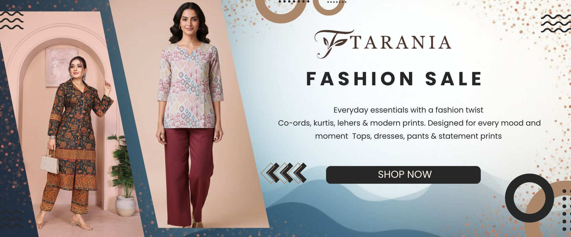 With 15 years of experience and 3 lakh+ happy customers, Tarania makes beautiful clothes directly from our own factory — no middlemen, no extra cost. We create outfits that are comfortable, stylish, and made for everyday women. From pants, co-ord sets, and tops to dresses, kurti-pant sets, and tunics, every piece is made with care and honesty.